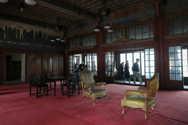 서울 창덕궁을 찾은 관람객들이 희정당(熙政堂) 내부를 둘러보고 있는 모습. (ⓒ뉴스1, 무단 전재-재배포 금지)