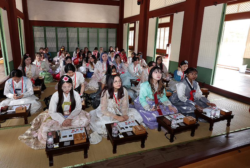 세종학당 한국어 우수학습자로 선정된 67개국 외국인들이 경복궁 수정전에서 집현전 왕실문화 체험학교에 참여하고 있다. (ⓒ뉴스1, 무단 전재-재배포 금지)
