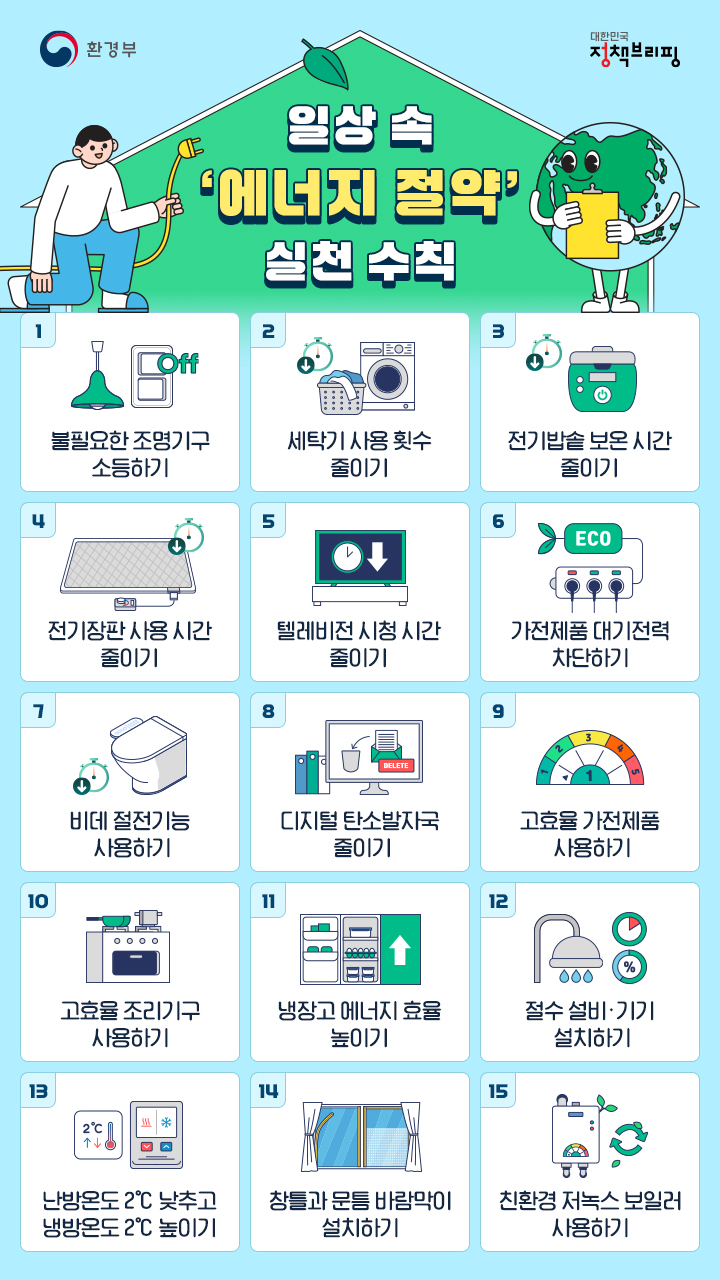 일상 속 ‘에너지 절약’ 실천 수칙은 다음과 같다.