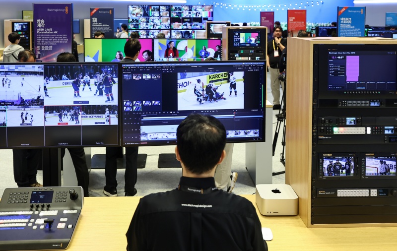 과학기술정보통신부와 한국전파진흥협회는 방송영상 AI 학습용 데이터 구축사업을 공모한다고 5일 밝혔다. 사진은 기사와 직접 관련이 없으며 지난달 열린 ‘제33회 국제 방송·미디어·음향·조명 전시회’에서 관람객들이 방송시스템을 살펴보고 있는 모습.(ⓒ뉴스1, 무단 전재-재배포 금지)