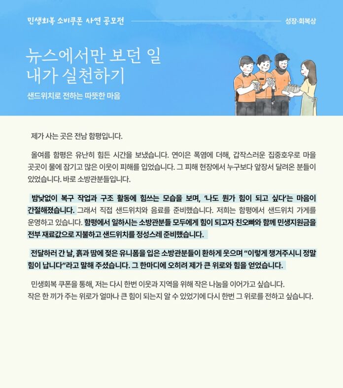민생회복 소비쿠폰 사연 공모전 – 성장·회복상