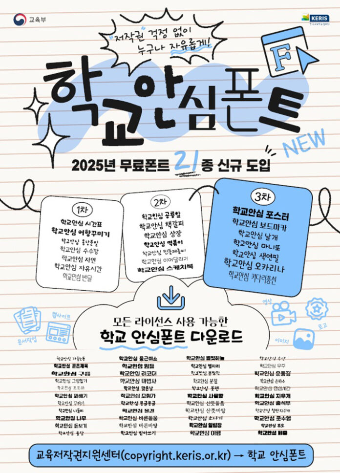 한편 학교 안심폰트는 교육저작권지원센터 누리집에서 누구나 무료로 내려받아 이용할 수 있다.