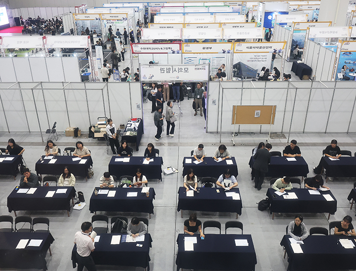 10일 경기도 수원시 영통구 수원컨벤션센터에서 열린 ‘2025 공직박람회’에서 관람객들이 공무원 모의시험을 치르고 있다. 2025.9.10 (사진=저작권자(c) 연합뉴스, 무단 전재-재배포 금지)